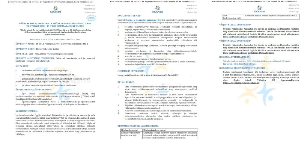 KOHUSTUSLIK KURSUS: TÖÖKESKKONNAVOLINIKU JA TÖÖKESKKONNANÕUKOGU LIIKME TÖÖTERVISHOIU- JA TÖÖOHUTUSALANE KOOLITUS, 24 ak.tundi